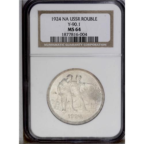 <B>U.S.S.R. Rouble 1924-,</B></I> KM-Y90.1, MS64 NGC. Brilliant and lustrous with a nice strike and a few light abrasions.