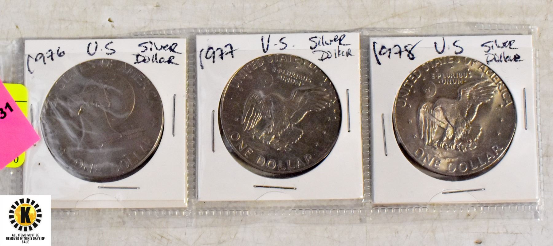 U.S. SILVER DOLLARS- 1976/1977/1978- SET OF 3