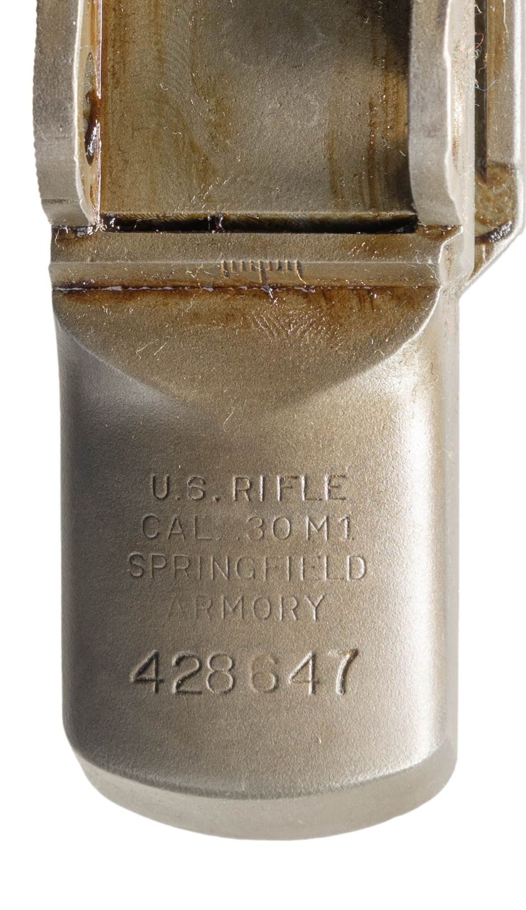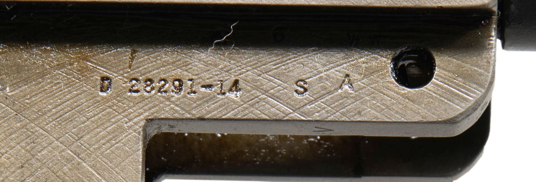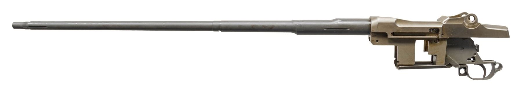 TRIGGER GROUP. Cal. 30-06. S# 428647. Bbl. 24". Barrel is marked on the right side "S-A-12-41". Muzzle & throat gauges 1.5. Receiver & barrel have no additional parts. Trigger housing w/ milled trigger guard has "SA" on all parts. CONDITION: trigger group, receiver & barrel retain a very large amount of their arsenal rework parkerized finish. Receiver & barrel do not carry any pitting. Good shiny bore w/ lightly worn lands. (25-2929/RW). MODERN. $200-400.
