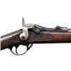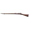 MILITARY RIFLE. CAL. 45-70. S# 58969. Bbl. 32". Low arch breech block dated "1873". Buffington rear sight marked "R" on the top right corner. Blade front sight. Flat lock plate marked "U.S. SPRINGFIELD" "eagle". 3 Click tumbler. Replacement hammer. 2 Piece trigger guard. Bbl. retained by 2 bands. Upper band w/ sling & stacking swivels. Ramrod is not present. Ramrod retaining spring does not move. Long comb walnut stock has boxed "SWP" inspector's mark. Stock has sm. stamped rack # on both sides of butt. UNATTACHED ACCESSORIES: 18" blade. Model 1873 socket bayonet marked "U.S.". Bayonet has traces of blue w/ oxidation & fine pitting throughout. CONDITION: stock has well worn finish w/ numerous scratches & handling marks w/ chipping issues at bottom of lockplate. Sm. crack behind lockplate. 2 Lg. missing chips on both sides of receiver tang. Metal has traces of blue turning gray & patina w/ oxidation & fine pitting throughout. Breech block latch is notably worn. Dark oxidized fitted bore. (01-25240/RW). CURIO. $500-800.