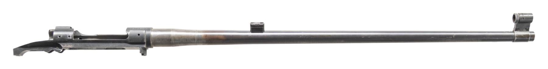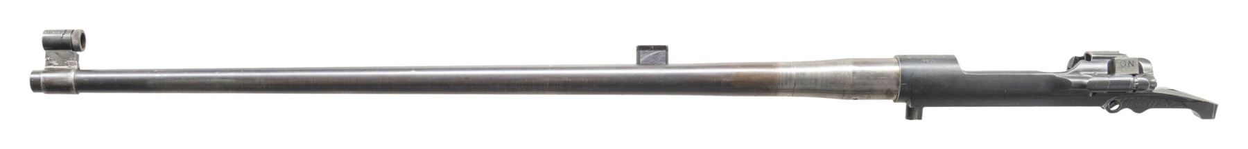 WITH BARREL. Cal. 30-06. S# 1471834. Bbl. 24". Barrel is marked at midway on top w/ "W.A.SUKALLE-GUNMAKER-PHOENIX,ARIZ". Barrel is numbered "71941" at bottom ahead of receiver. Barrel is fitted w/ raised scope block. One attaching screw is not present & also fitted w/ standard 1903 fixed sight base which carries a Redfield target aperture sight. National Match receiver has high quality deep blue & punch mark midway of the polished right-hand receiver rail. Drilled on the right side of bridge for receiver sight. Top of receiver ring is drilled for scope block. Receiver is fitted only w/ the cutoff assembly, including ejector. Barrel has had the original rear sight base removed, leaving that area in the white. CONDITION: receiver retains 70% of its lightly worn thinning original blue. Barrel shows thinning & wear of its original blue finish w/ scattered handling marks. Bore has well-worn lands & frosted grooves. (25-2919/RW). MODERN. $100-200.