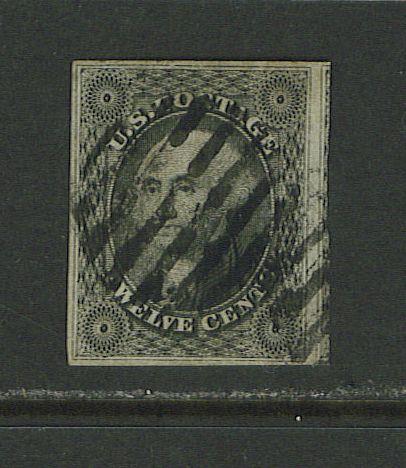 Very nice stamp, U.S.Scott 17, Used 1851-57 imperf issue with black grid hand cancel, large right margin shows part of stamp at right. VF+. Small ironed out crease at upper right does not detract from this beauty. 2009 SCV.$350