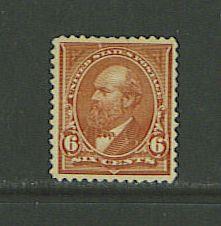 Very nice centered stamp, U.S.Scott 256, 6c Garfield, Unused with VF centering, full lightly hinged original gum. Select. 2009 SCV.$175+
