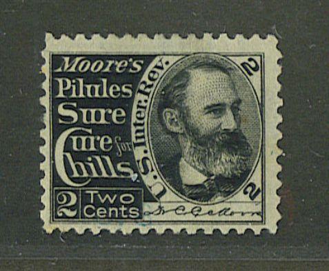 Dr.C.C.Moore 2 cent black, U.S.Scott RS184b, Used with F-VF centering, nice sound condition. 2009 SCV.$82++