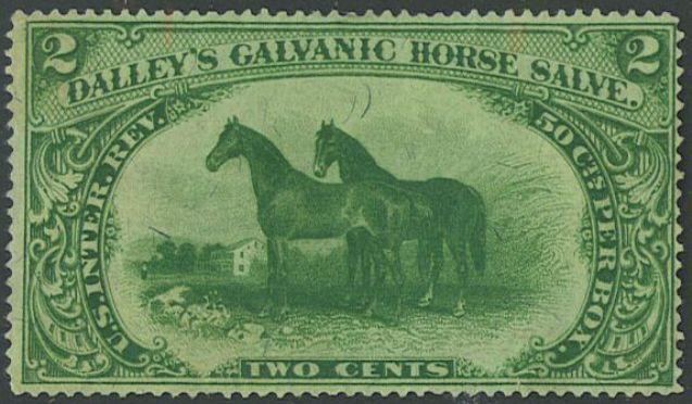 Great stamp, Dalley's Galvanic Horse Salve, U.S.Scott RS73b, Used with F-VF centering and rarely seen sound condition. 2009 SCV.$225++