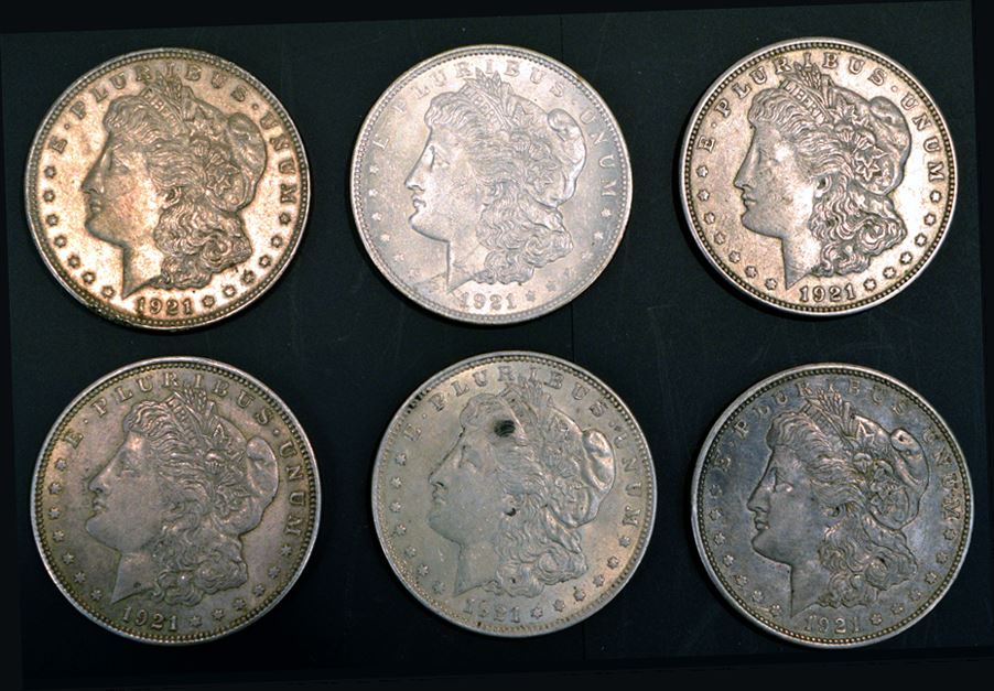 U.S. Silver Dollars, 1921, Morgan, (6)