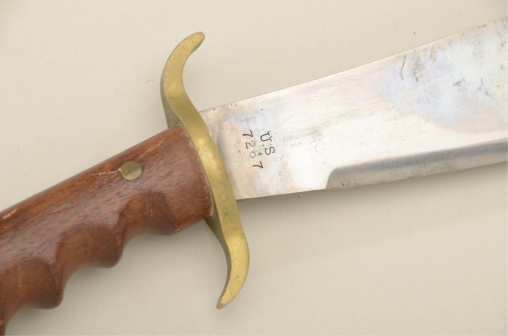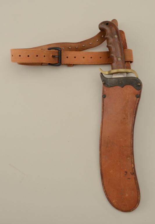 U.S. Springfield Armory Bolo knife with RIA marked leather sheath and belt, 1908 dated knife and 1912 dated sheath; both in overall very good condition. Est.: $200-$400.