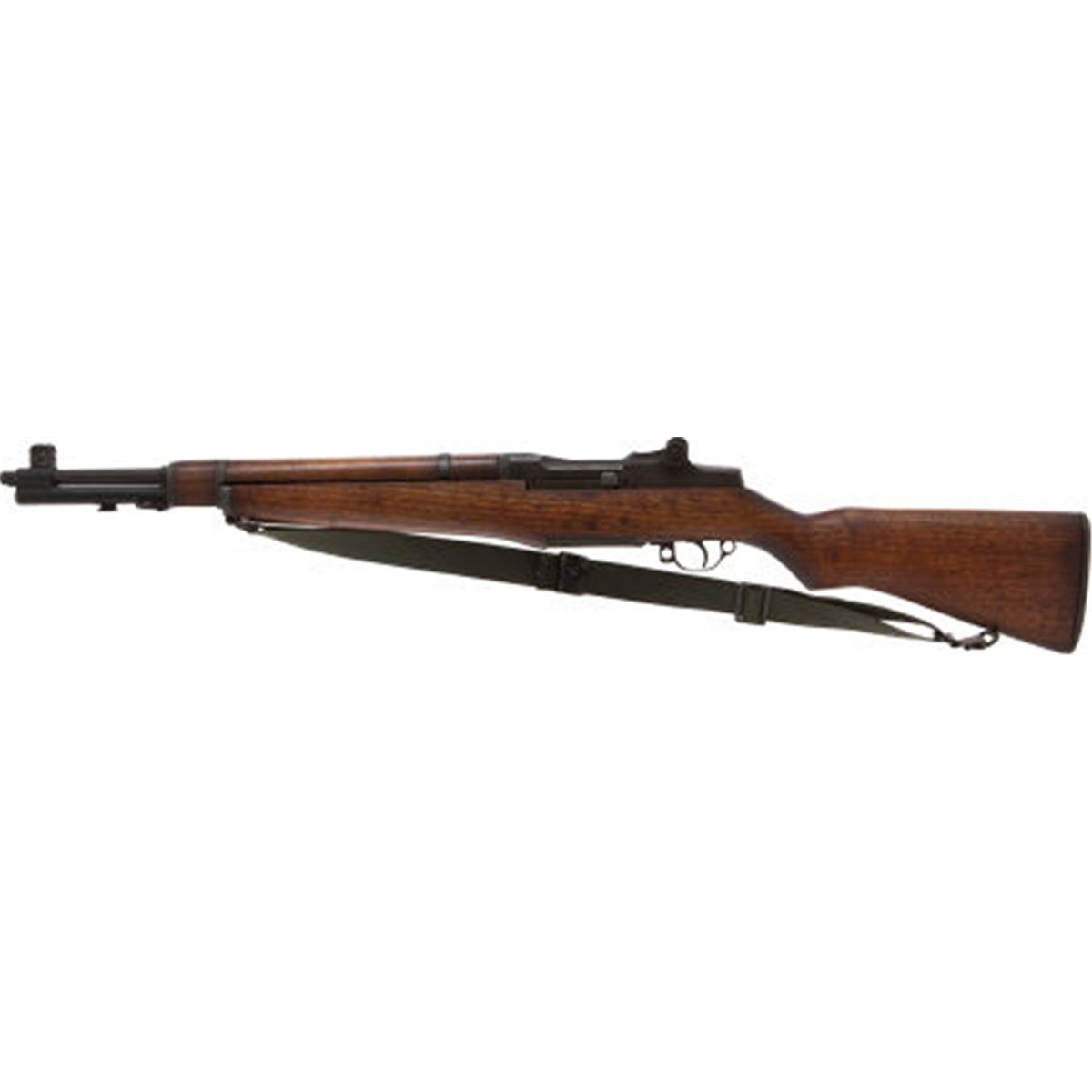 U.S. Springfield Armory M-1 Garand "Tanker" Style Semi-Automatic Rifle. Serial no. 1925185, .30-06 caliber, 18-inch barrel with standard sights. Parkerized finish. Import stamps. Unmarked varnished pistol-grip walnut stock and armguard. Sling mounts. Green nylon web sling. Condition: Excellent as reconfigured and refinished. Retaining approximately 95-100% refinish with light handling wear overall. Wood with minor handling wear. Action good. Bore good. NRA FIREARMS FOR FREEDOM PROGRAM