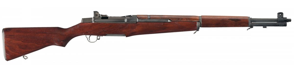 World War II production receiver that was subsequently upgraded to National Match Specs. Fixed front sight marked "NM/062" on the side and fully adjustable rear sight marked "NM/2A" on the side with the elevation drum marked "B S" and the windage drum marked "NM CCP". The barrel, operating rod and gas tube are all marked "NM". The barrel is dated "1 63" and has a small "DOD" cartouche. Mounted on a smooth walnut pistol grip stock with a circled "P" proof, "DOD" cartouche and a checkered stamped steel buttplate with trapdoor (empty). Come with one en-bloc clip and three plastic protectors.