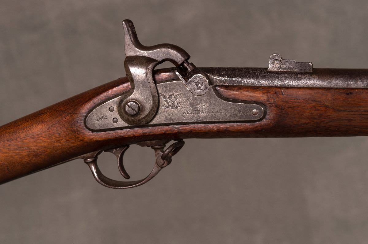 U.S. Springfield Civil War Musket, Model 1863. 56" overall, .58 caliber. Traces of original inspectors marks.