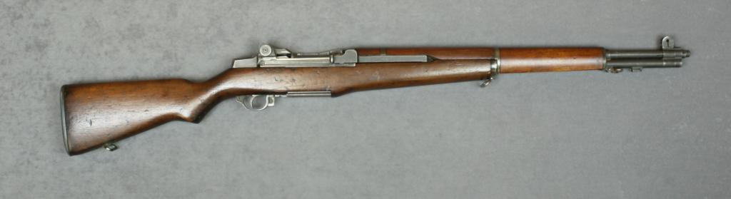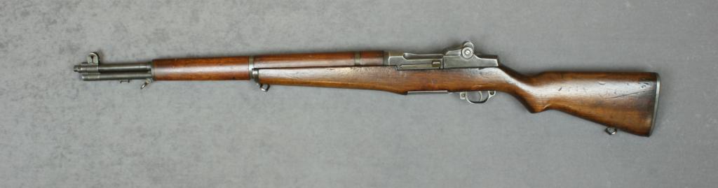 U.S. Springfield Garand semi-auto military rifle, .30 cal., 24” barrel dated 5-61 with what appears to be Danish proofs, wood stock, #4321834. This gun is in overall very good condition showing considerable militaryparkerized finish, good bore, crisp action, good markings, overall good wood with scattered nicks, mars and scratches to butt stock and what may be replacement fore and top barrel stocks. Est.: $300-$600.