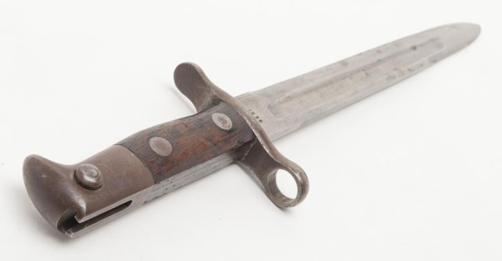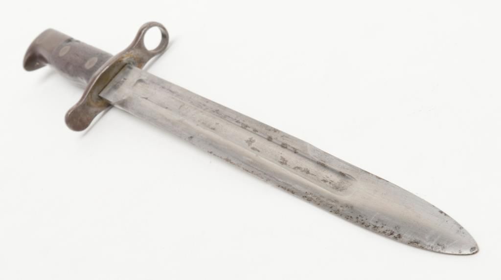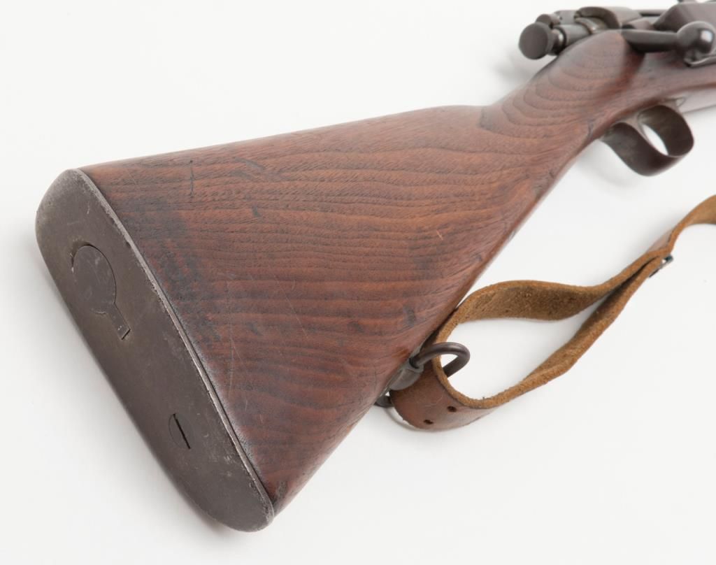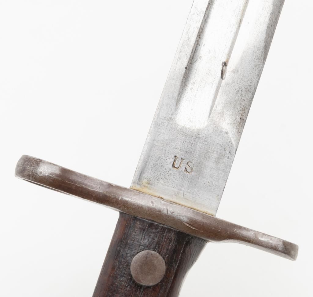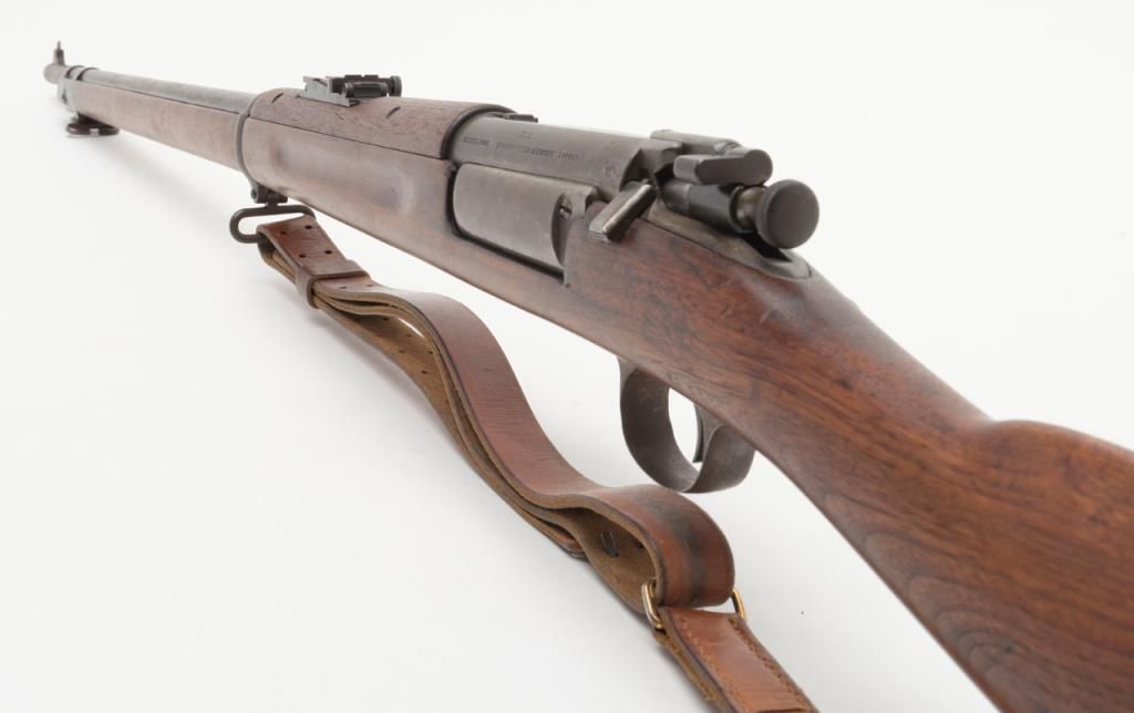 U.S. Springfield Krag Model 1898 bolt action rifle, .30-40 Krag cal., 30” barrel, blue and case hardened finish, full length wood stock, leather sling, with bayonet and metal scabbard, #187851 in overall very good + condition showing blue mixedwith a brown patina on barrel and toning of finish on the receiver; very good bore, crisp action and markings, very good wood with some minor old mars and scratches from carry and storage; visible circle P proof and partially visible 2-digitnumber behind the trigger guard with inspector’s cartouche on left side of stock above trigger assembly; Brauer Bros. St. Louis marked leather sling with 1898 dated bayonet and metal scabbard with hanger in very good condition. (C&R). Est.: $500-$1,000.