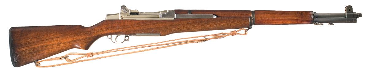 Produced in June of 1945. Blade and adjustable peep sight, with "BATTLE RANGE" marking and locking bar. Springfield barrel with April 45 date, Springfield bolt, hammer, trigger group housing and operating rod. Smooth stock with "P" stamped grip, "SA/ GAW" and Ordnance stamps on the left side ahead of the wrist, "309" on the comb, brown leather sling and checkered buttplate.