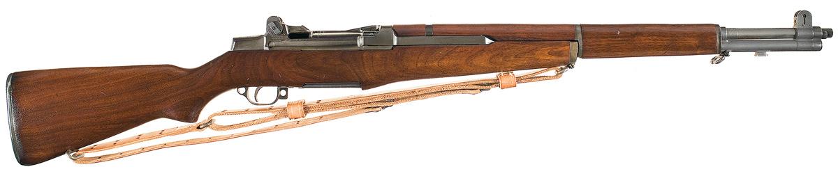 The receiver was originally produced in August of 1943, and was later re-barreled with a new SA/H&R barrel chambered for the 7.62mm NATO cartridge. Blade and adjustable peep sights, with "BATTLE RANGE" elevation knob and locking bar. Springfield barrel dated SA "5 65". Directly below and to the rear of that it is hand stamped "H&R P 7.62 NATO" indicating conversion was performed by the H&R company. Fitted with a Springfield bolt, Winchester trigger guard, Springfield hammer, trigger group housing and operating rod. Smooth pistol grip stock, with a circled "P" on the grip, tan leather "MRT/ 12-86" stamped sling, and a checkered metal buttplate. With a cardboard shipping box and a U.S. Navy requisition form from the U.S. Naval Surface Warfare Center (Crane Division) to Gunners Mate First Class Thomas Damrow of Waterford, CT for this rifle. Research shows GMG1 Damrow, USN, as a Distinguished Pistol Badge winner, All-Navy Pistol Silver Medalist and Navy Pistol Team member in 1995.
