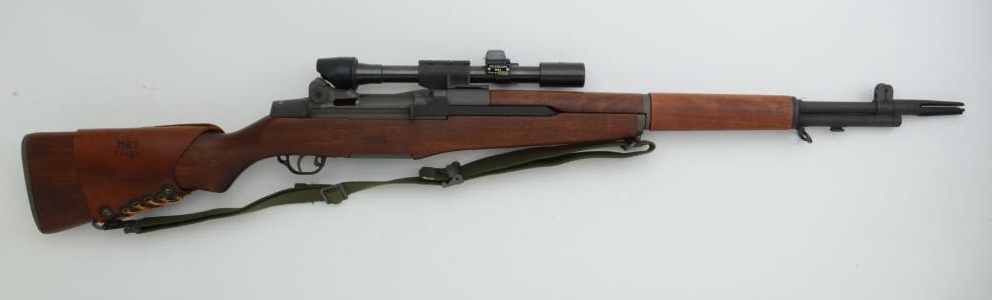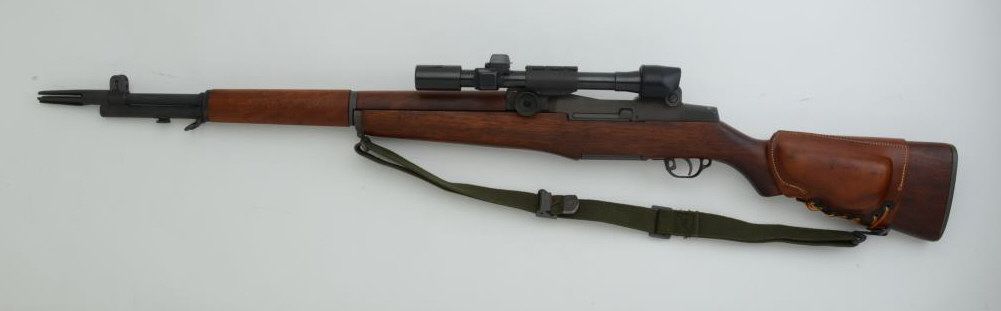 U.S. Springfield M1 Garand rifle, .30 cal., S.A. 24” barrel dated 3-52 with muzzle break, parkerized finish, wood stock with leather cheek piece dated 11-62, woven sling, #1044769, mounted with an M84 telescope,serial #47854 with crisp optics. This gun is in overall very good + condition as re-furbished showing a very good bore, crisp action, good markings and very good stock with P proof and no other visible inspectorcartouche. Est.: $1,500-$3,000.