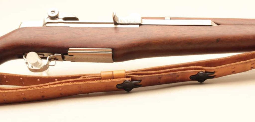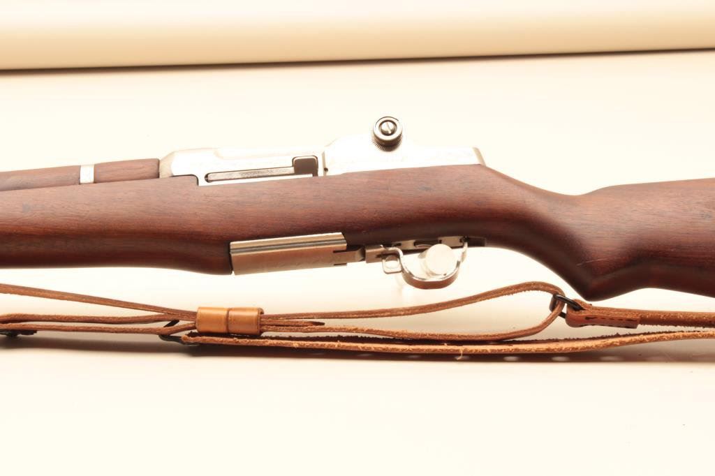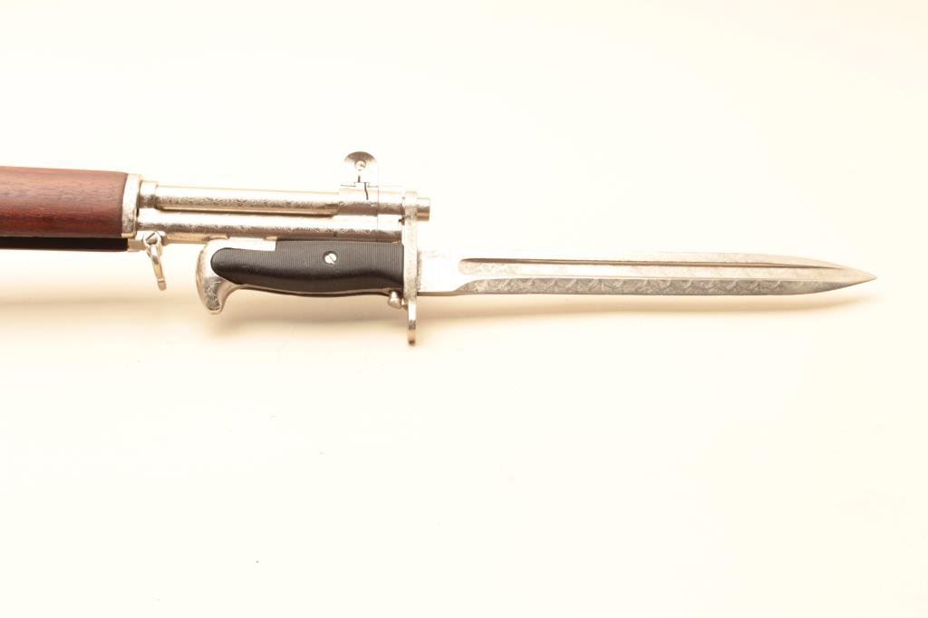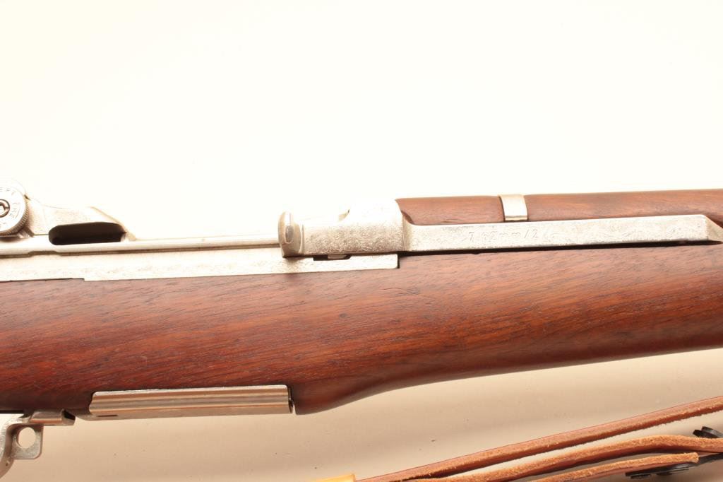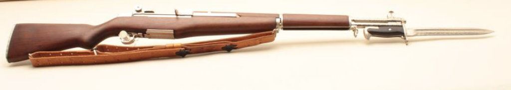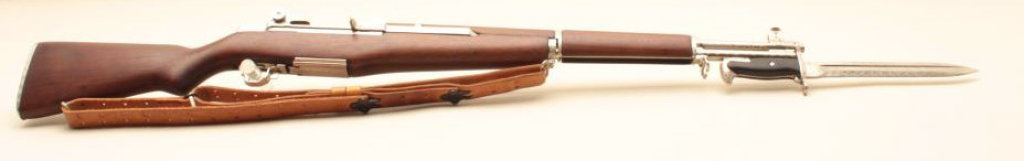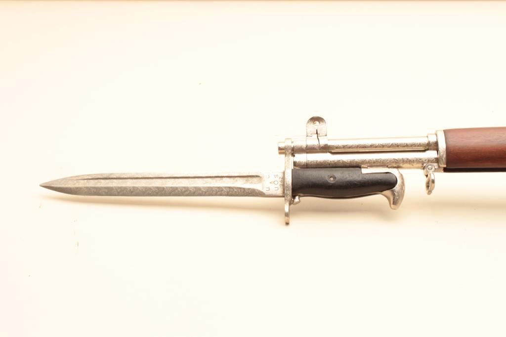 and re-worked for parade use, wood stock, leather sling, S/N 7009330, with bayonet (no sheath) engraved and chromed to match; overall very good condition. (C&R). Est.: $1,000-$2,000.