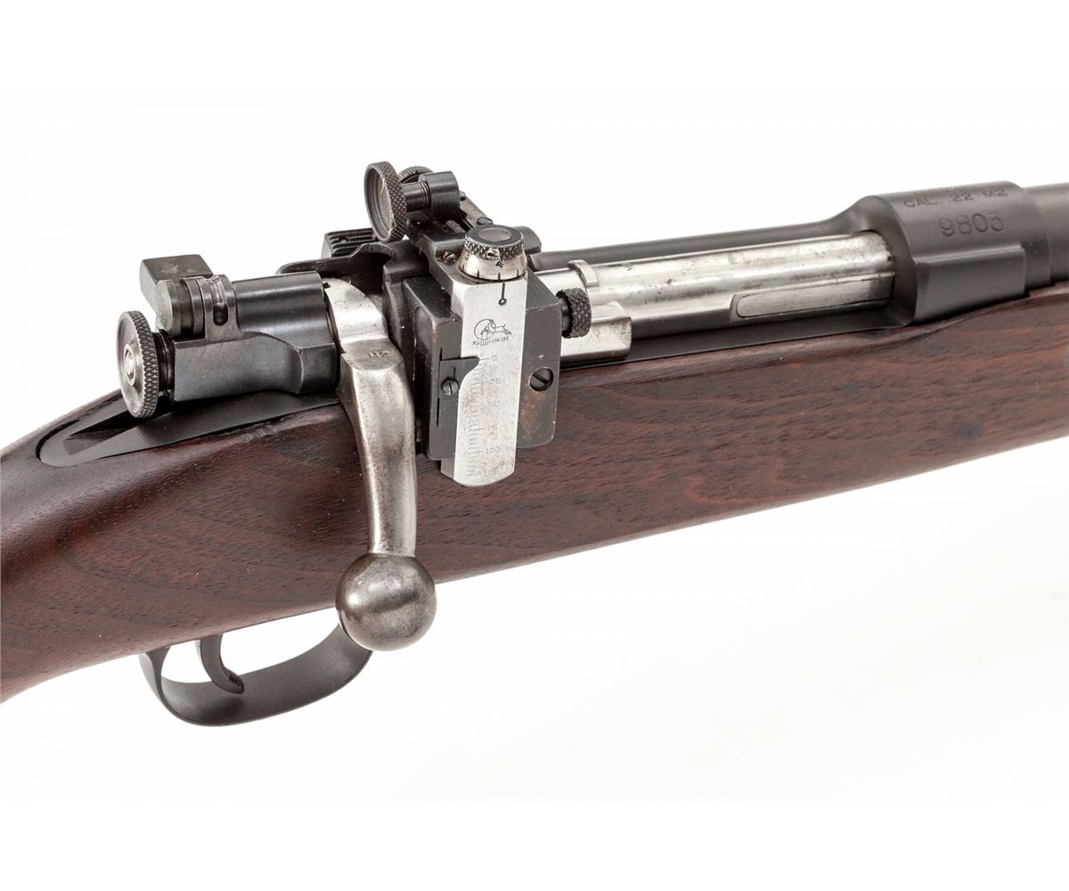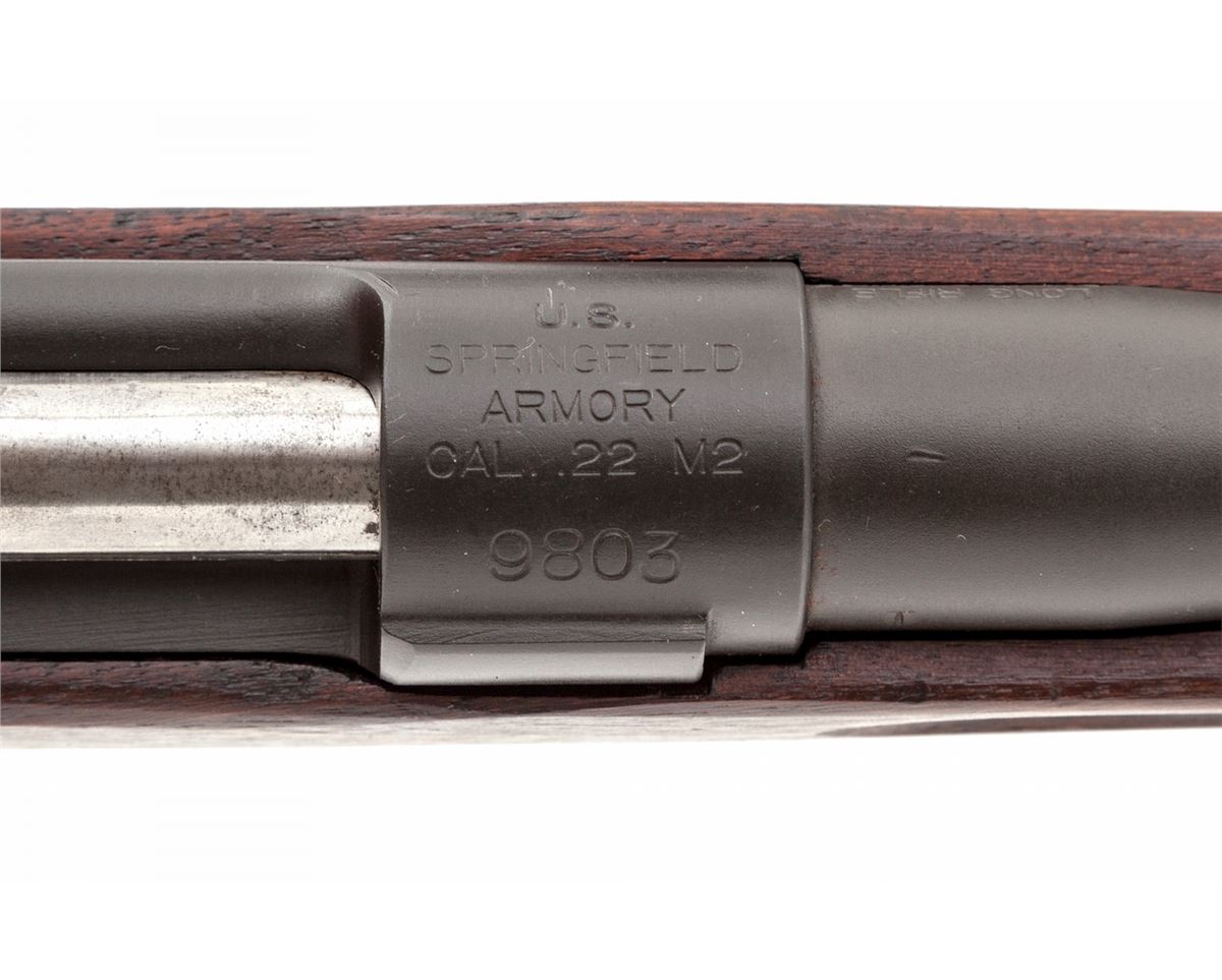 U.S. Springfield M2 Bolt Action Target Rifle, #9803, .22 LR cal., 24'' barrel dated 12-41, parkerized finish, polished bolt, ''SA'' cartouched walnut stock, with one magazine. Condition is excellent showing little use. Light handling marks to stock. Bolt is correctly numbered in electro-pencil. Action and triggerpull are crisp, bore and crown are excellent. Est.: $1,200-$1,800. (C&R)
