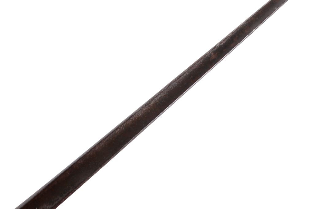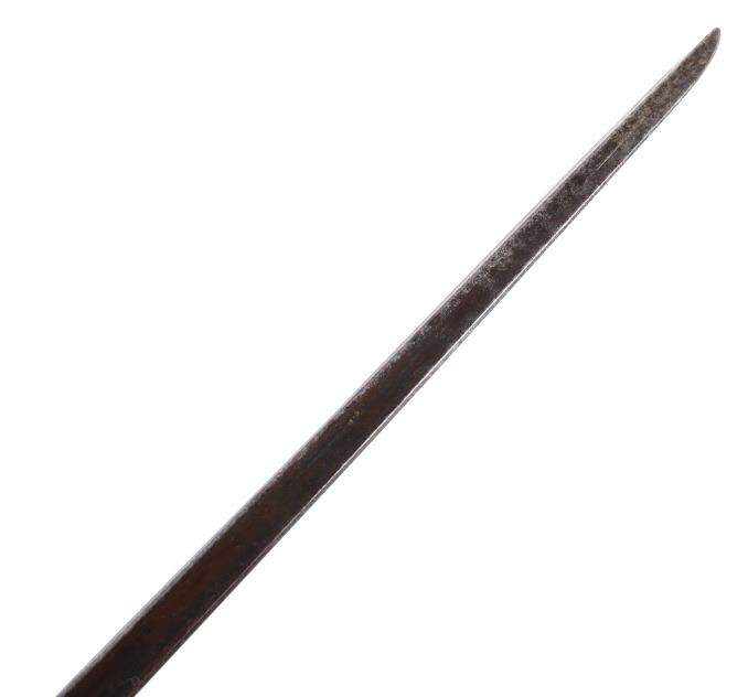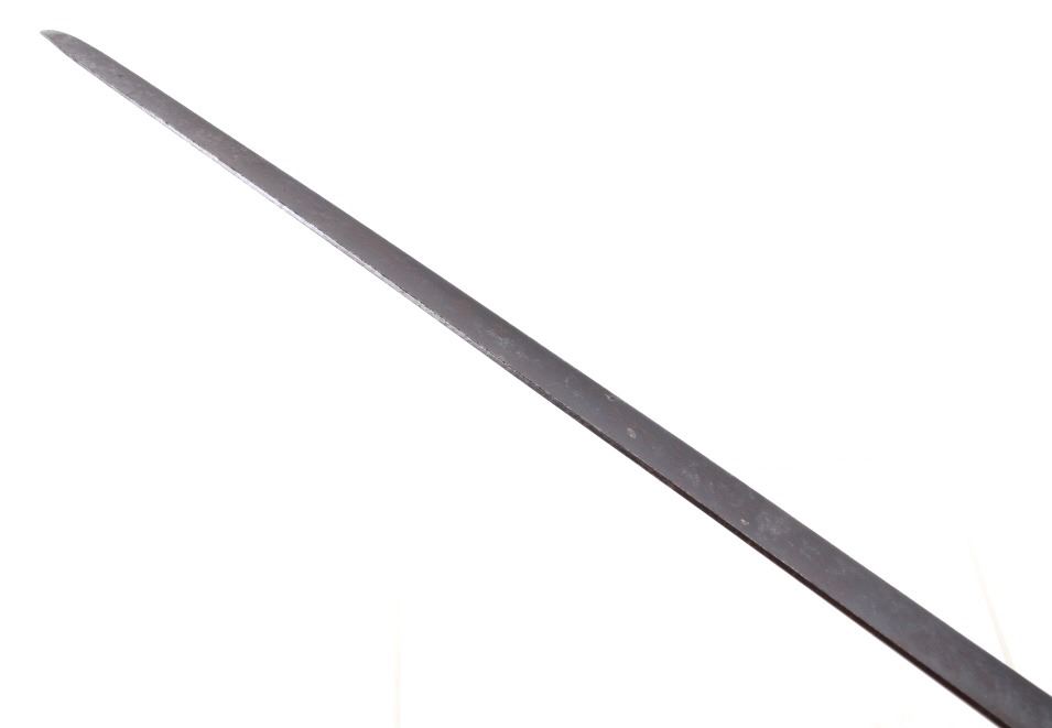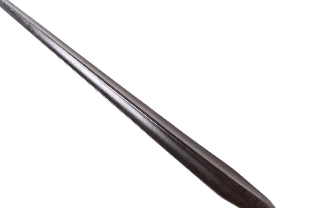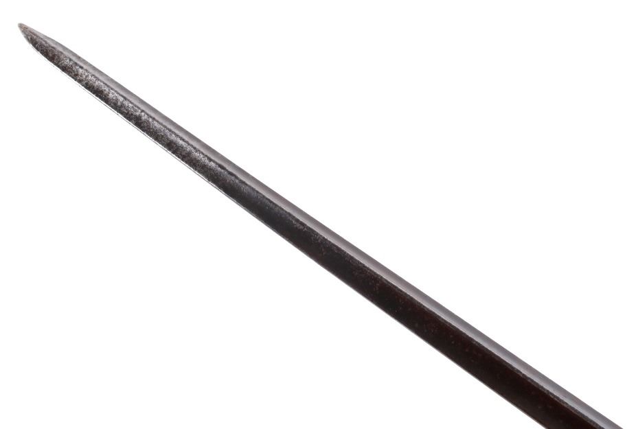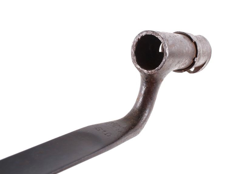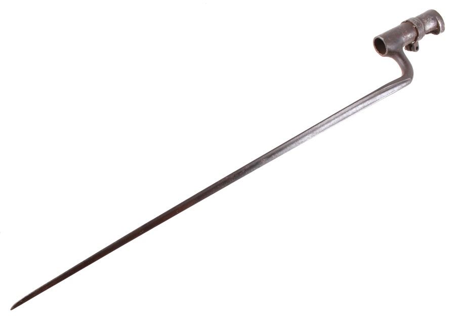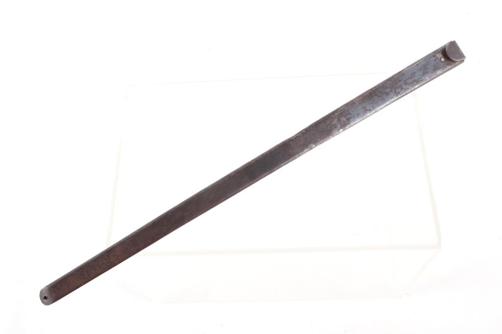 Included in this lot are a U.S. Springfield model 1873 trapdoor bayonet and scabbard. The model 1873 bayonet and scabbard was made for the iconic Indian Wars and Spanish American War Trapdoor Springfield Rifle, caliber .45-70 that was in service from 1873 up until the end of the 19th century. The triple blade is marked "U.S.” near the base. The piece comes with its original metal sheath. The piece is in good condition overall, with some discoloration on the scabbard; the bayonet has some slight pitting. The bayonet measures 21" long with the blade being 18" long.