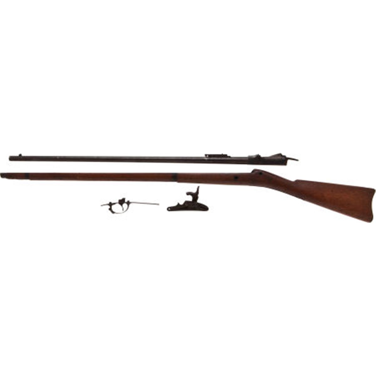 U.S.Springfield Model 1884 Trapdoor Rifle. Serial no. 301068, .45-70 caliber, 32-inch barrel with blade front and folding ladder rear sights. Blued finish. Flat arch breech marked,"US/MODEL/1878." Lock with eagle and marked, "SPRINGFIELD." Stock with 1885 inspector's cartouche on left side. Curved steel buttplate with US stamped on upper tang.Condition: Very good as configured. Sold as a disassembled rifle which includes stock, barrel assembly, lock assembly,trigger assembly, 5 screws and two barrel bands. Barrel with a mottled plum finish mixed with gray patina. Stock good with numerous dents. Bright bore with light wear.NRA FIREARMS FOR FREEDOM PROGRAM