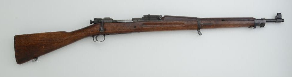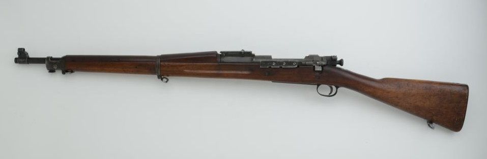 U.S. Springfield Model 1903 bolt action rifle, .30-06 cal., 24-1/2” barrel, military finish, CRACKED RECEIVER AT BREECH, wood stock, SA barrel dated 6-17, side mounted scope base, #704013; parts gun only; barrelbore is good, stock is overall fair to good. From an old estate. Est.: $100-$150.