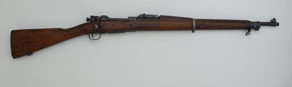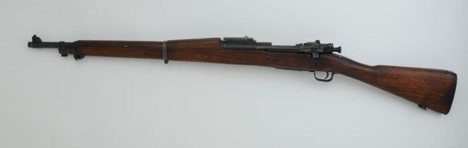 U.S. Springfield Model 1903 bolt action rifle, .30-06 cal., 24” barrel marked “H.S.” with flaming bomb proof and dated 10-44; military finish, wood stock, #1403679. This gun is in overall good condition with a goodbore, action and markings; replaced center barrel band; overall good wood with no visible proofs or cartouches. Est.: $300-$600.