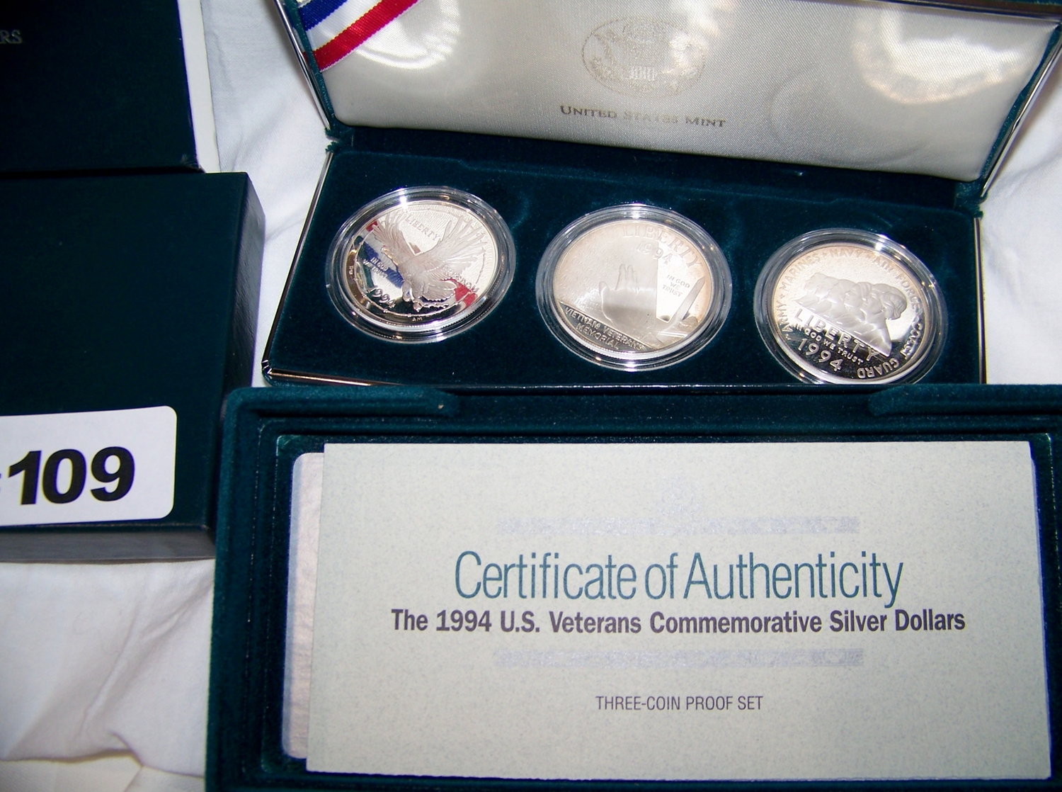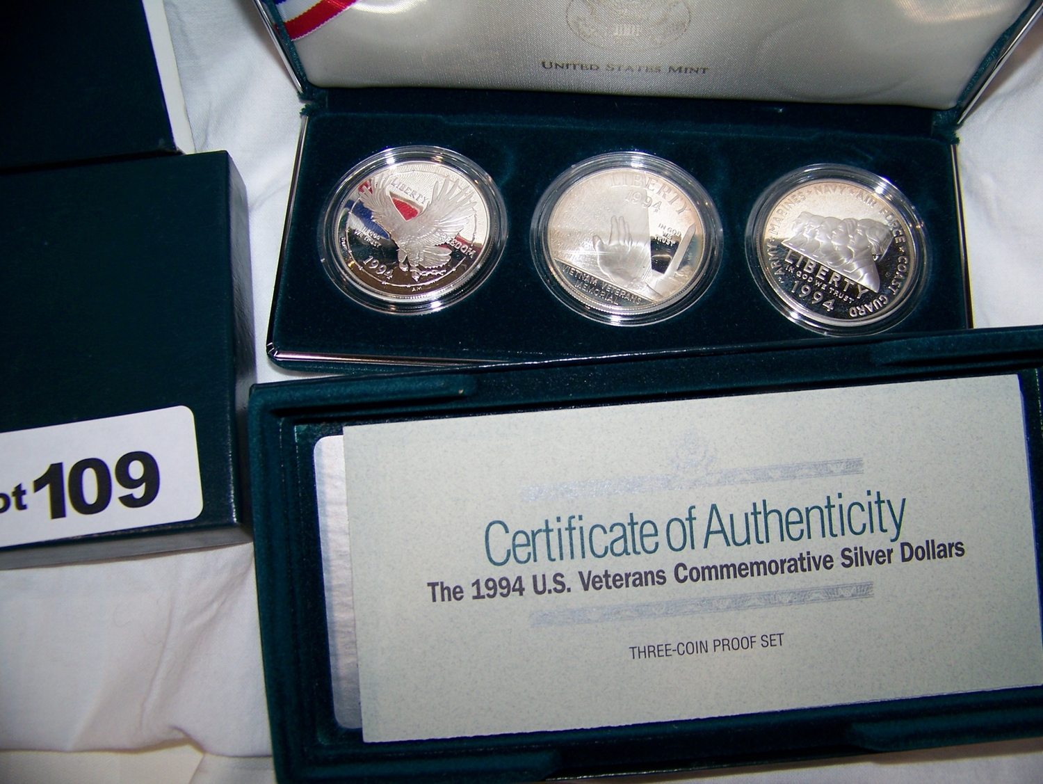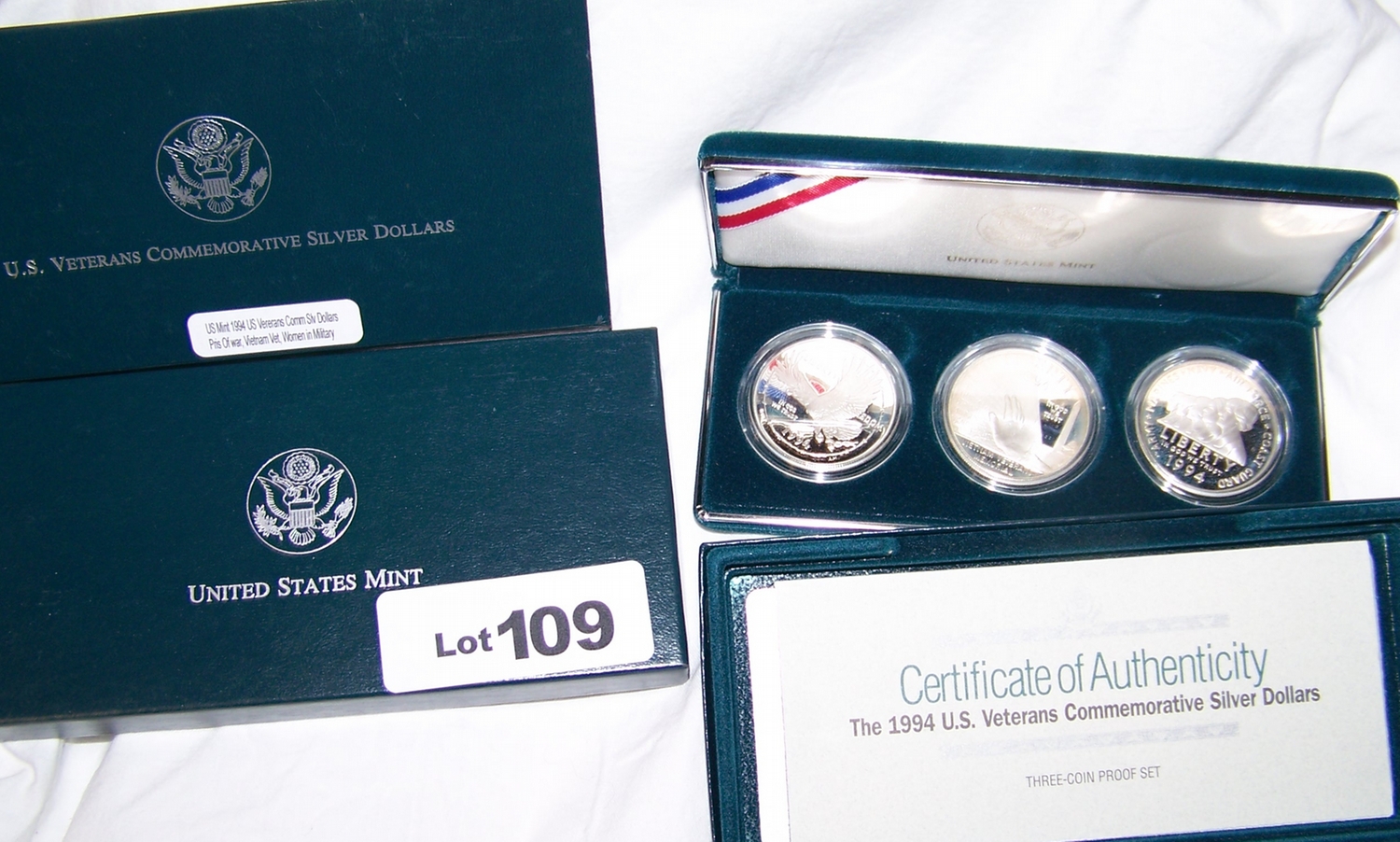 U.S VETERANS COMMEMORATIVE SILVER DOLLARS, in presentation case