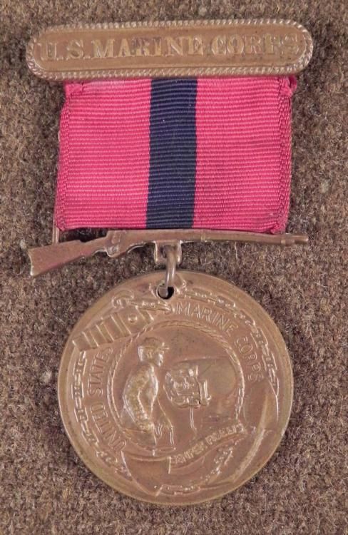 THIS IS AN U.S. WWII MARINE CORPS VINTAGE GOOD CONDUCT MEDAL. THE TOP PANEL READS "US MARINE CORPS" WITH A RIBBON BELOW. THE MEDAL IS MADE OUT OF BRONZE WITH A RIFLE AND MEDAL SUSPENDED WITH LIKENESS OF CIVIL WAR MARINE & SEMPER FIDELIS. ON THE REVERSE IT READS: FIDELITY-ZEAL-OBEDIENCE. *