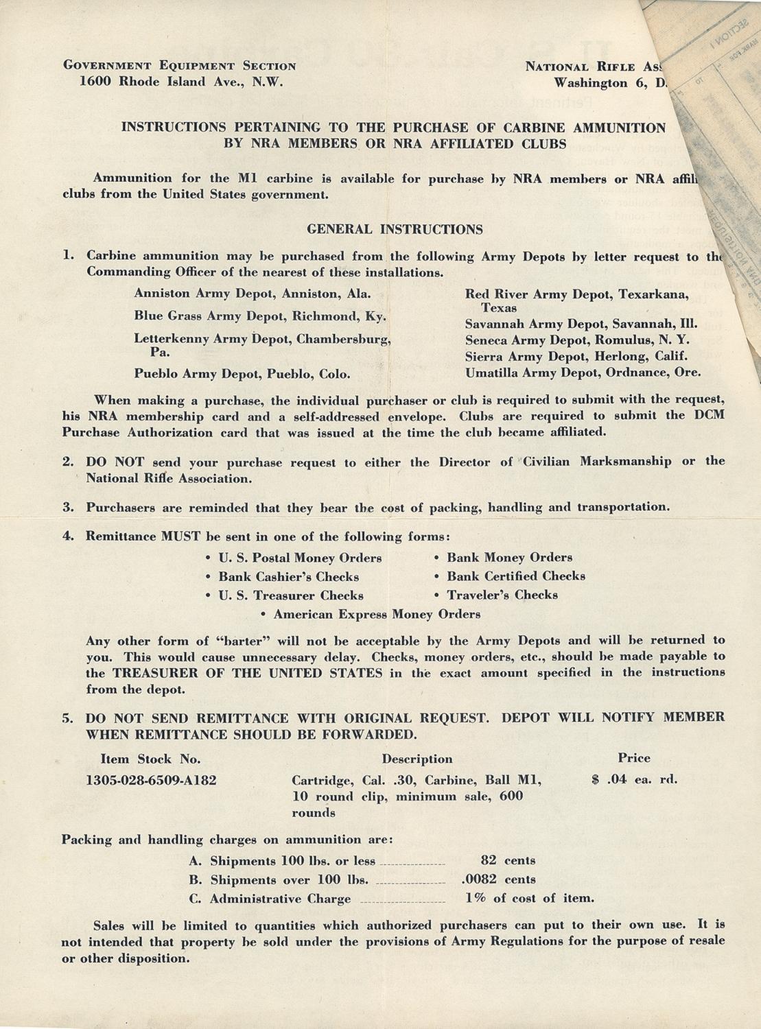 Condition: Very fine as partially restored (stock only with metal excellent). The carbine retains 97% of the correct original factory parkerized finish. The bolt retains 98% of the original blue finish with some limited loss due to cycling the action. The magazine retains 95% original blue finish with thinning and wear from normal usage. The stock has been sanded, refinished and restamped, and remains fine with a few light scratches and handling marks. The markings are crisp and clear. Mechanically excellent. The sling is excellent.