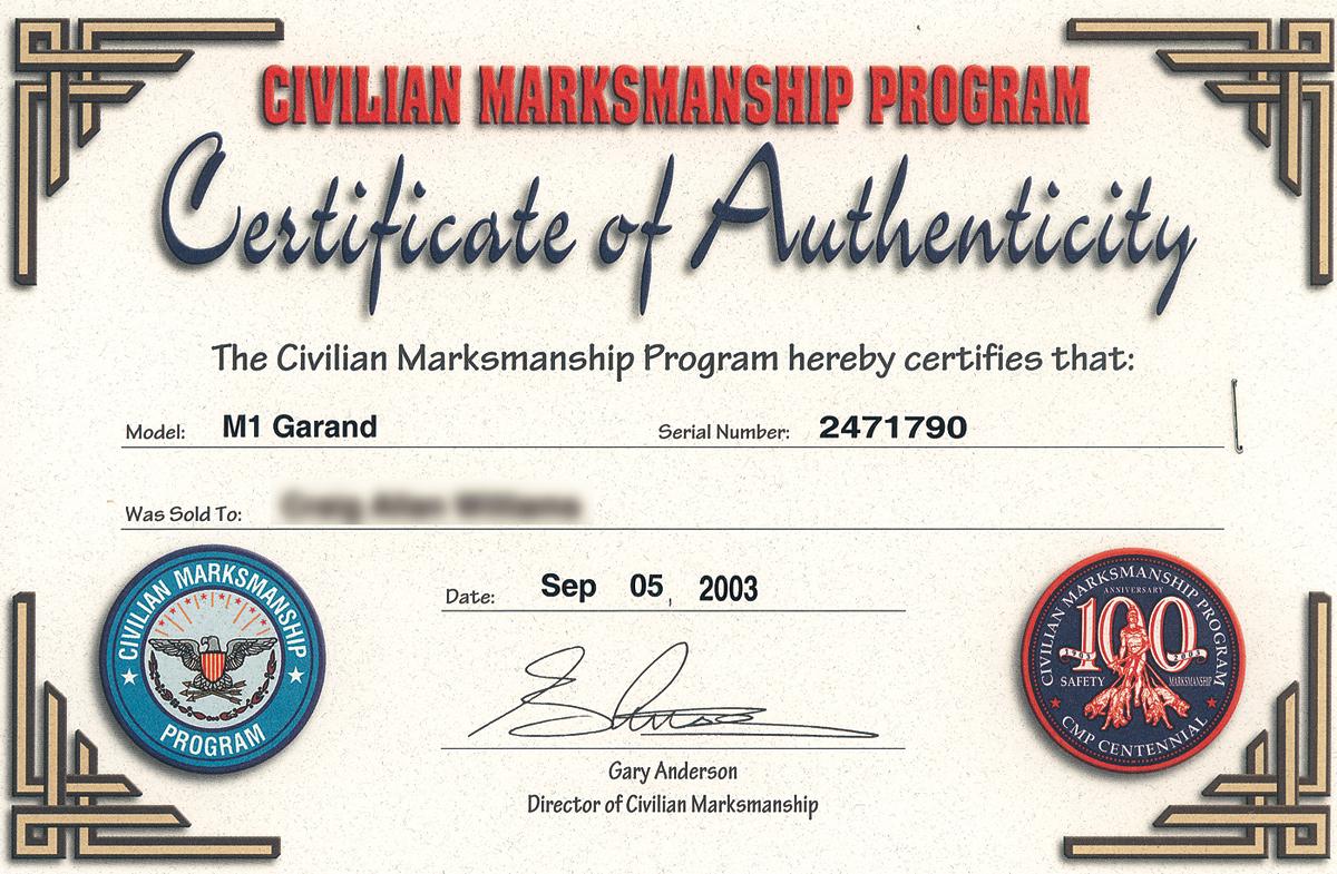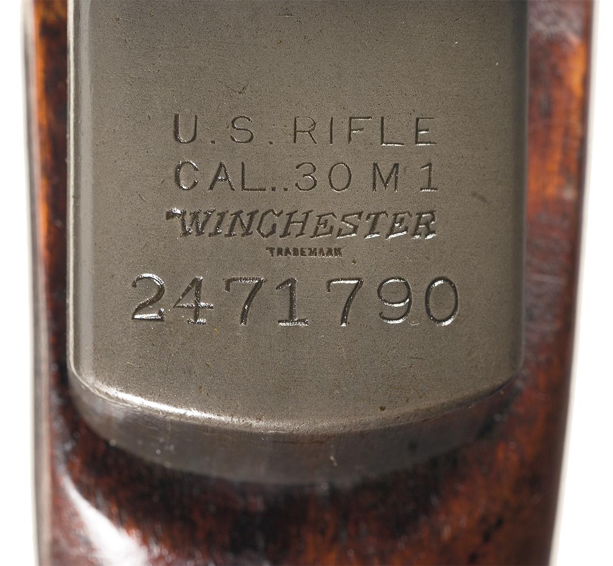 Produced in August of 1944. Blade front and adjustable peep rear sights, with original Winchester proofed barrel, with a Springfield bolt, Springfield hammer, trigger housing and operating rod. Later replacement pistol grip stock that has been glass bedded, with a circled block letter "P" behind the trigger, "43" (rack number) painted on the left side of the buttstock, faint markings DoD cartouche on the opposite side, and a checkered buttplate. With a shipping box, gun lock and paperwork from the Civilian Marksmanship Program.