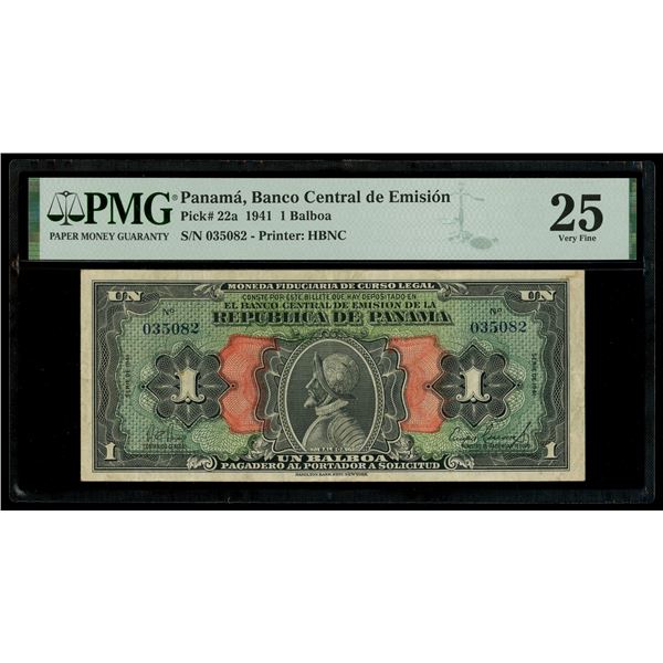 Panama, Banco Central de Emision, 1 balboa, series of 1941, serial 035082, "Arias" "Seven Day" note, PMG VF 25. SCWPM-22a. Popul...