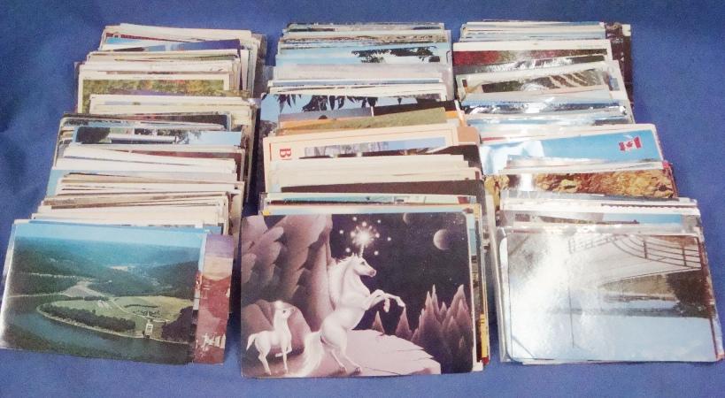 Several (100) cards from scattered early 20th c. to mostly 20th c. chromes. Both U.S. and foreign, many travel type cards. Unused & used. Est.$50-75