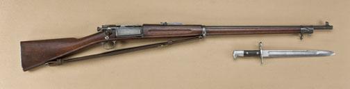 U.S. model 1896 Krag rifle by Springfield Armory, .30-40 caliber, serial #56397 with bayonet dated 1901 and fine original sling. The gun remains in very good plus to near fine condition with 50-70% thinning andtoning blue finish, strong quenched case hardened finish on sideplate and loading door. Stocks are also very good plus with just a couple of minor storage marks, good āPā cartouche on triggerguard, no cartoucheon left side of stock. The edges and markings are sharp. The 1901 dated bayonet is good, the 1902 dated sling is near fine. The action is crisp, the bore near excellent. Est: $800 - $1,600