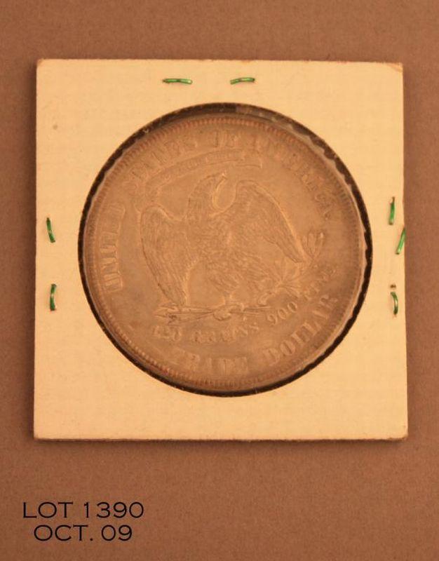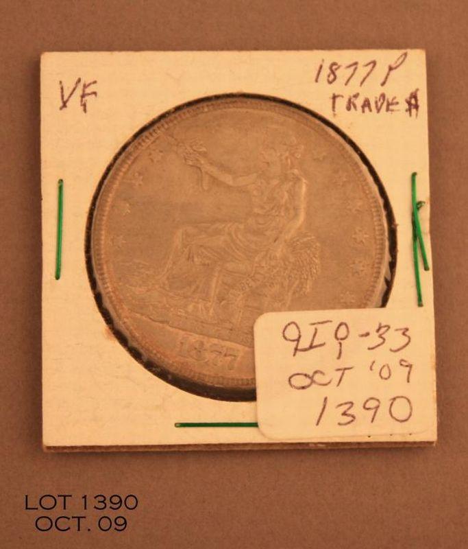 U.S. silver Trade Dollar dated 1877 in circulated, ungraded overall good condition. Est.: $100-$300.