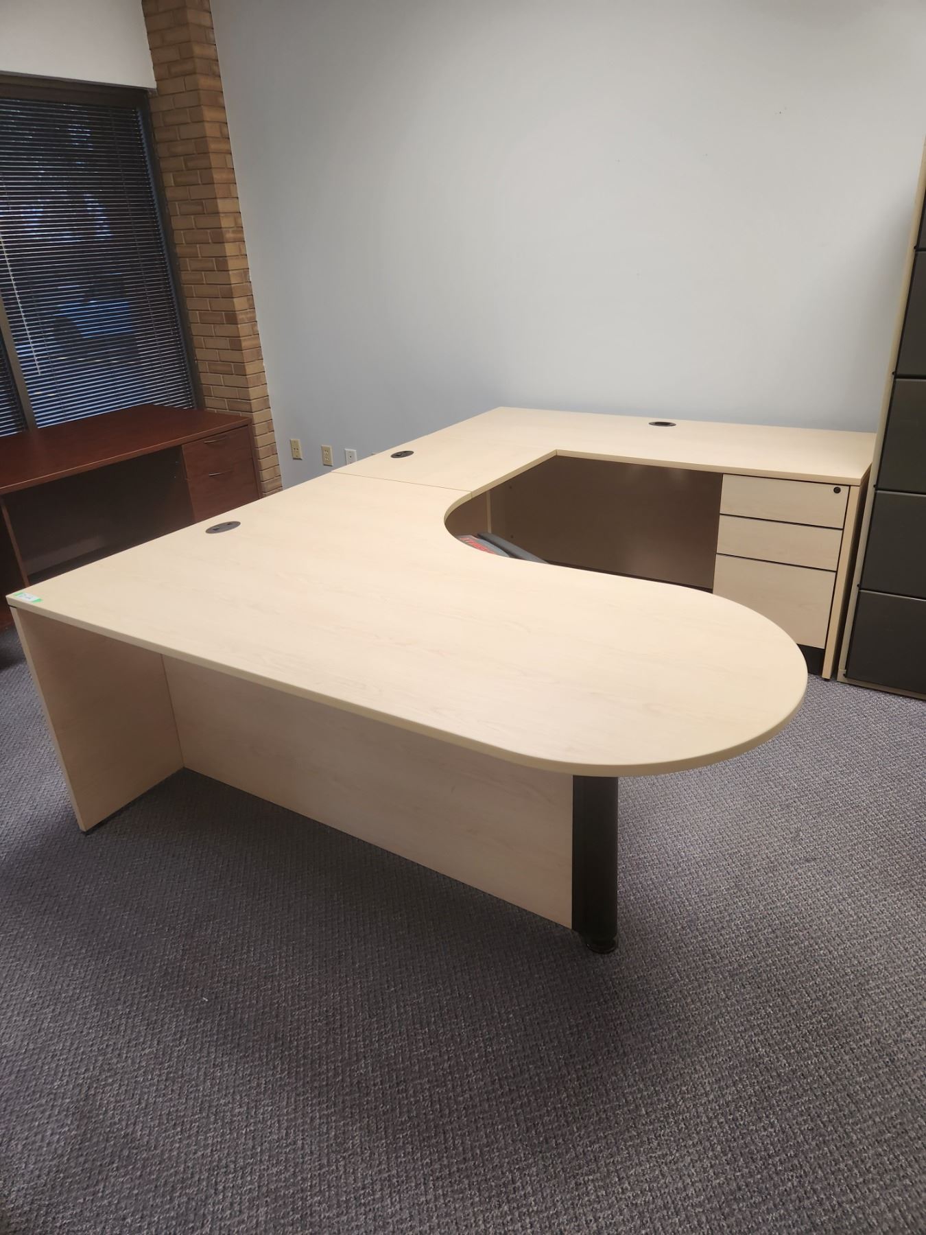 U Shaped Office Desk with Keyboard Pad (Lighter Color) - (66" x 96" x 72" x 30" H x 24" D x 30" D)