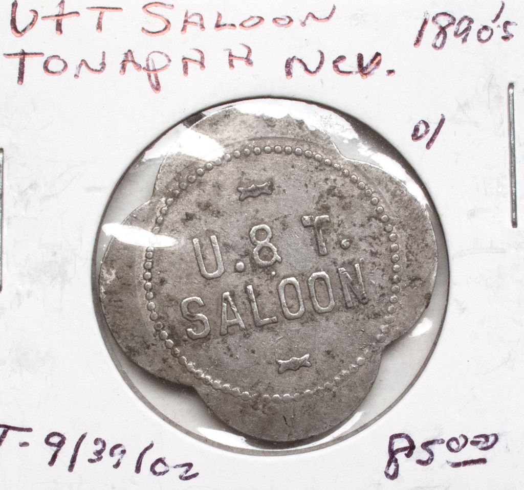 1) U & T Saloon / GF 12 1/2c IT. Scallopped, Aluminum. Early.City: TonopahCounty: NyeState: NVDate: