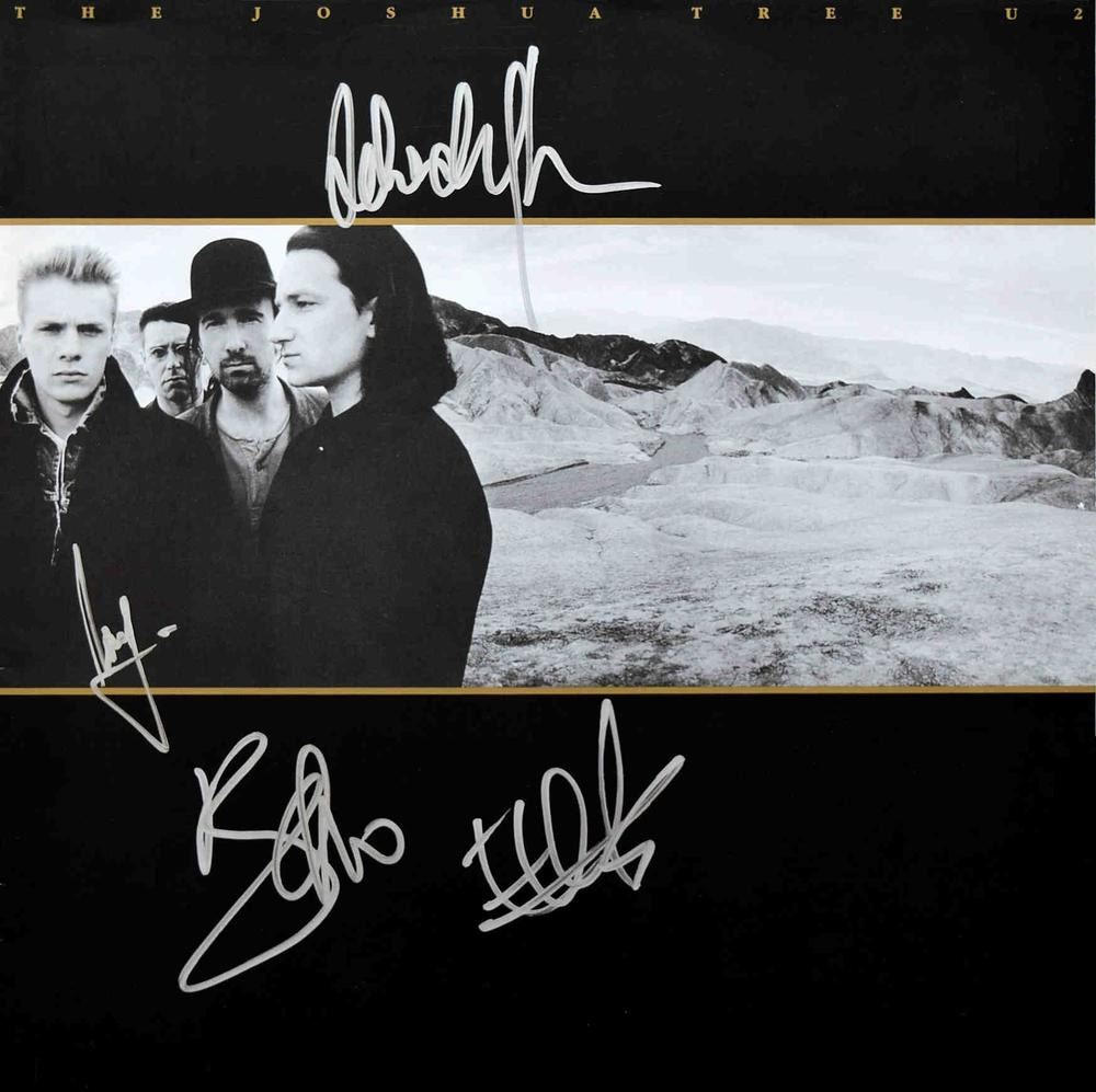 U2 Band signed insert booklet. Signed Insert Booklet with Photo’s and Lyrics to the Album ‘The Joshua Tree’ Signed: Bono, The Edge, Adam Clayton and Larry Mullen Jr.