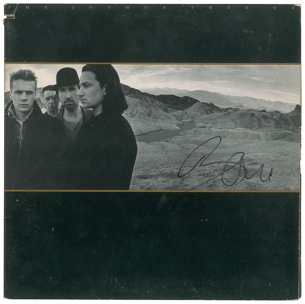 The Joshua Tree promotional album by U2, signed on the front cover in black felt tip by Bono. In fine condition, with a bit of old price sticker residue. The record is included. Accompanied by a John Brennan Collection letter of provenance.