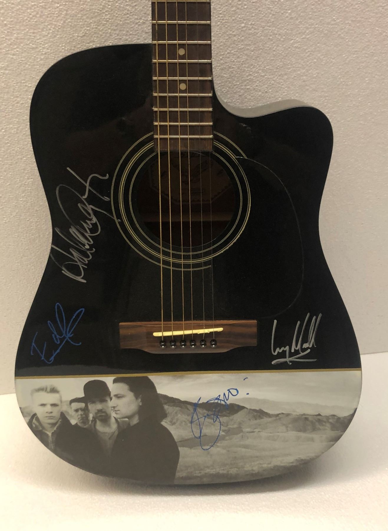 Signed by Bono, the Edge, Adam Clayton, and Larry Mullen Jr.