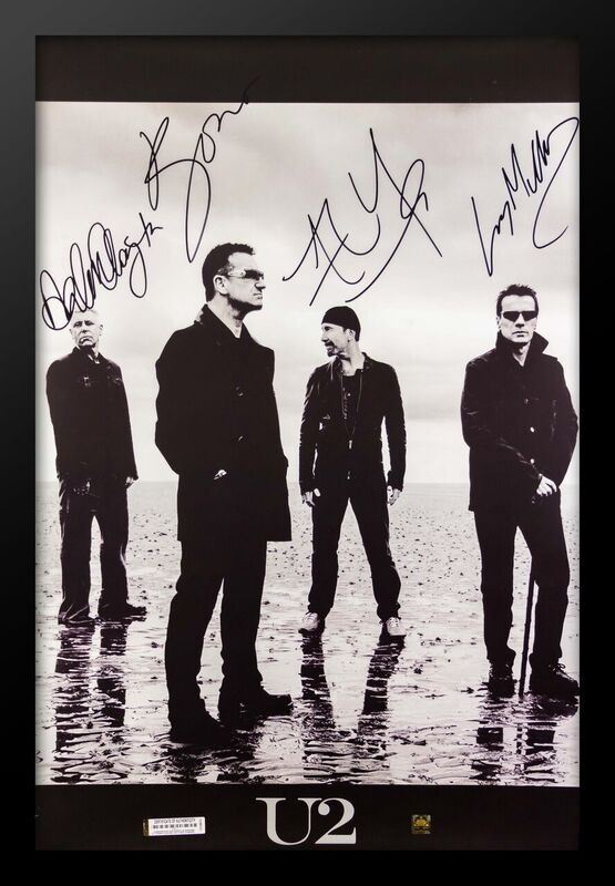 U2 framed autographed guitar. U2 are an Irish rock band from Dublin formed in 1976.The band formed at Mount Temple Comprehensive School in 1976 when the members were teenagers with limited musical proficiency. Within four years, they autographed with Island Records and released their debut album, Boy (1980).  Autographed by Bono, The Edge, Adam Clayton & Larry Mullen Jr. This item comes with a Certificate of Authenticity from a third party authenticator. This Certification of Authenticity does not imply that the item will be certified by any other rival authentication companies. The accompanied certification is the only certification the auction company can confirm. These items are being sold as collectable pieces and there is no guarantee that this item can be resold on any online marketplace. Each of these companies has their own policies and politics.