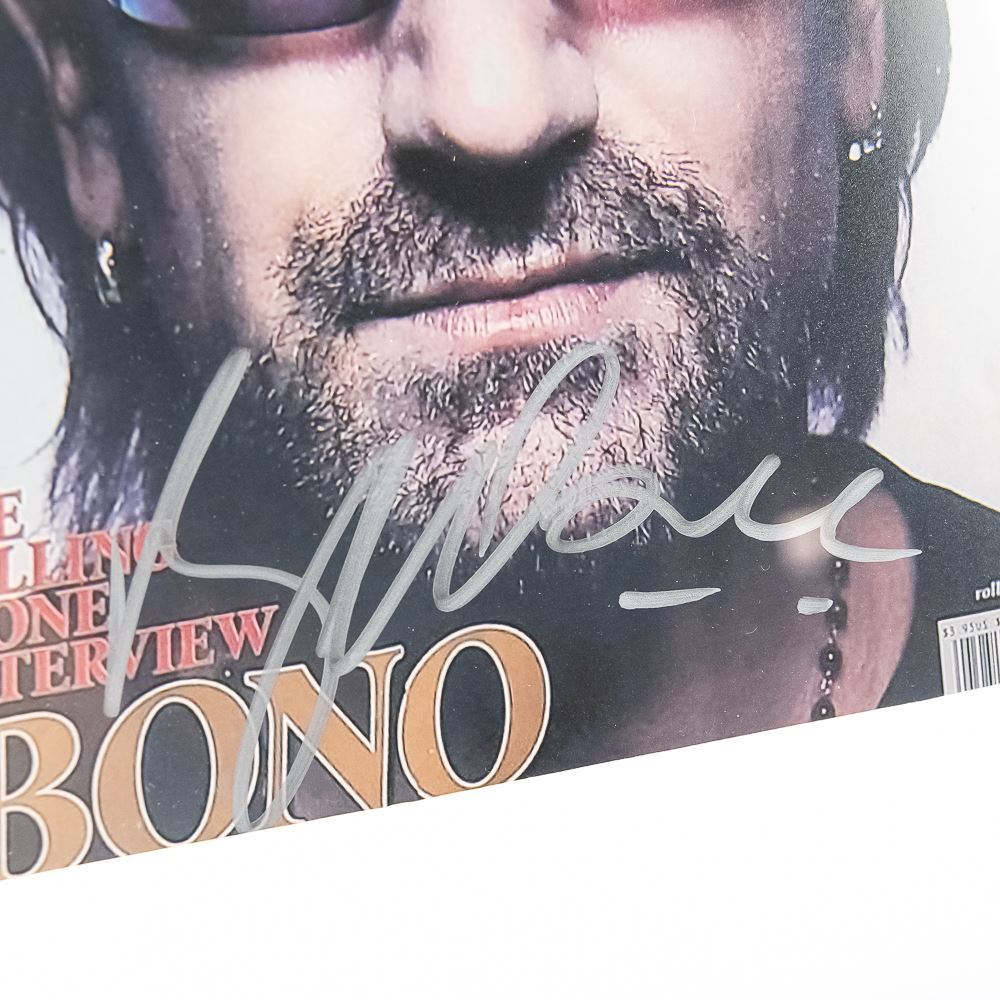 U2's Bono autographed Rolling Stone framed photo. Approximately 15.25"l x 12.25"w with COA. Perfect Addition to your collection, please use photos to judge condition and bid accordingly.