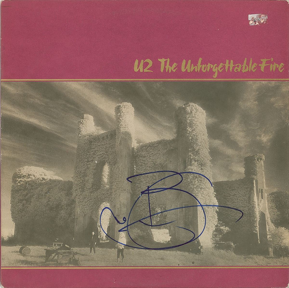 Three albums: The Joshua Tree signed in blue felt tip by Bono; Rattle and Hum signed in silver ink by Edge; and The Unforgettable Fire signed in blue felt tip by Brian Eno. In overall fine condition. The Joshua Tree record is included. All autographs were originally obtained by in-person specialist Mike Wehrmann.