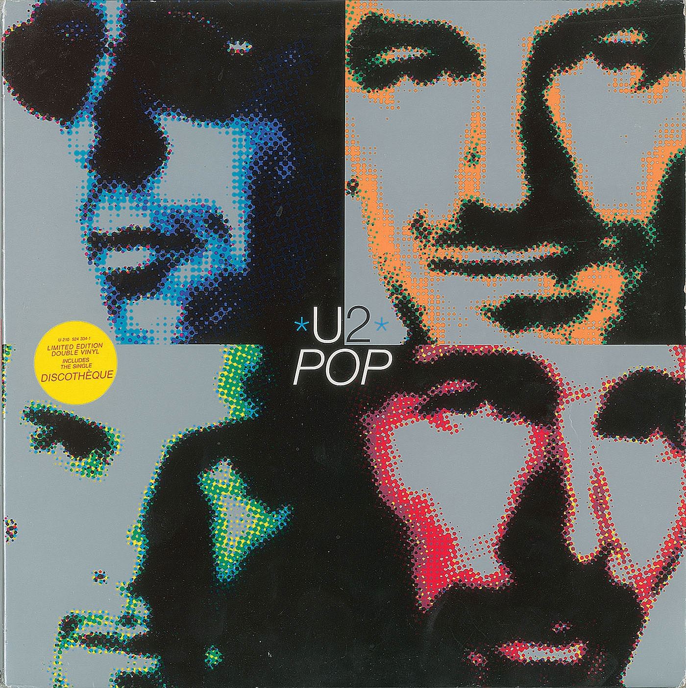 Pop double album signed on each side of the two inner sleeves in blue or black felt tip by the pictured musician: "Bono, 2000," "Adam Clayton," "Larry Mullen," and "Edge." In fine condition. The records are included.