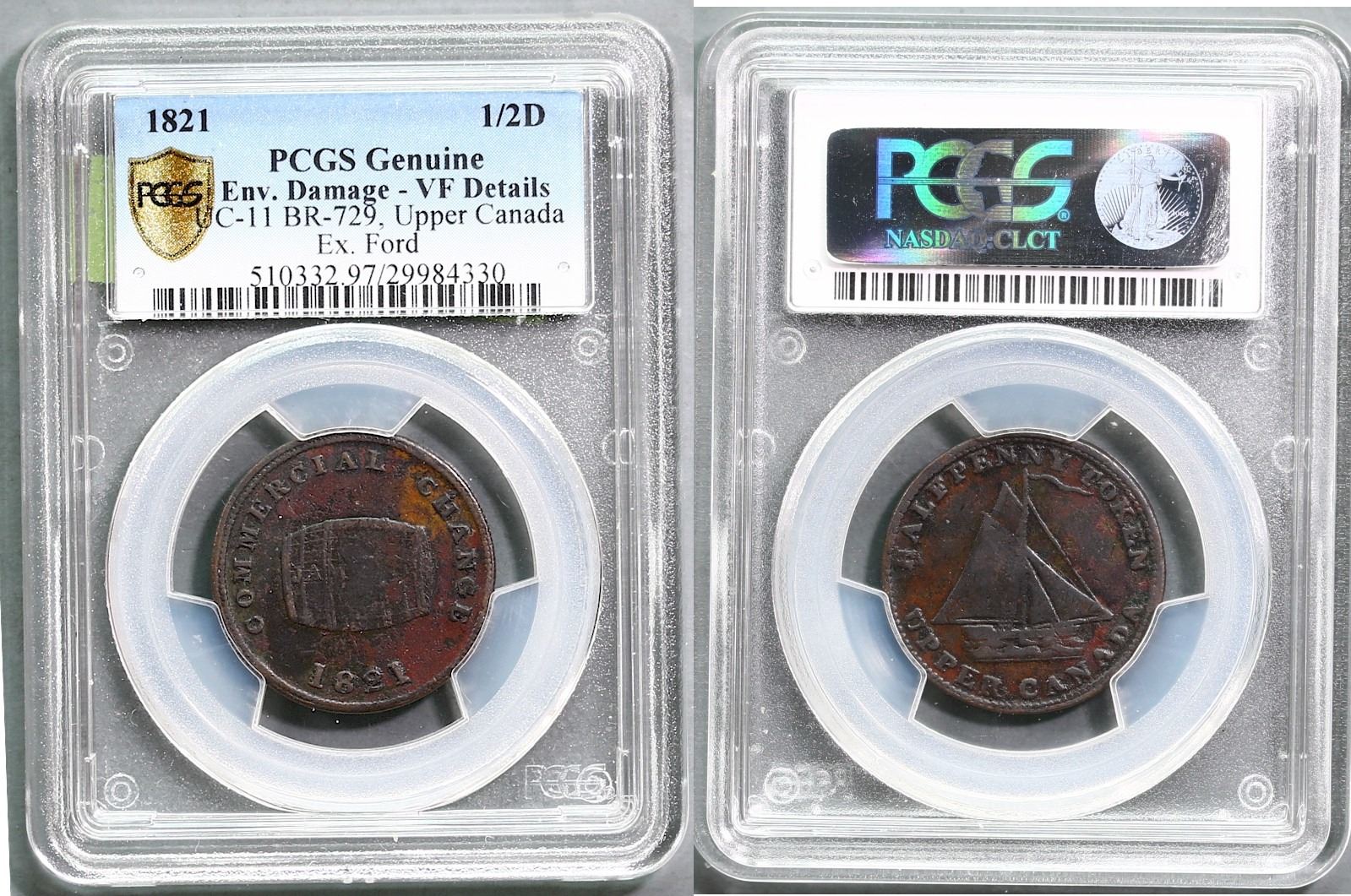 UC-11, Breton 729, C-11, 1821 1/2d "Jamaica Cask" Upper Canada; PCGS - VF Details. Ex. Ford Collect