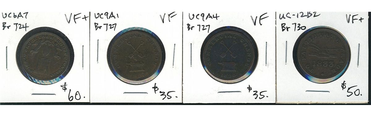 UC-6A7, UC-9A1, UC-9A4 & UC-12B2 all VF. Lot of 4 tokens. (PBBC)
