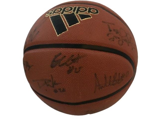 Adidas orange leather basketball signed by Ben Howland,  and players #11, #5, #21, #34, #14, #20, #0, #24, #2, #1.  Also includes a blue UCLA Adidas baseball cap with embroidered Adidas and UCLA logos signed by Ben Howland, Scott Duncan and others.