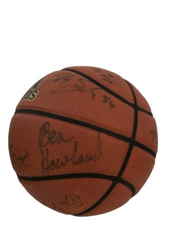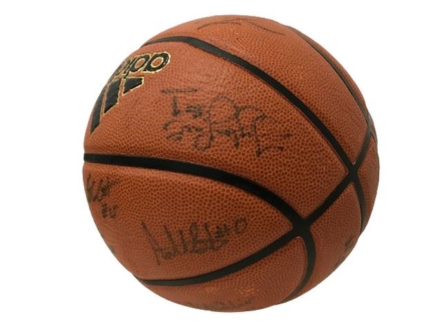 Adidas orange leather basketball signed by Ben Howland, and players #11, #5, #21, #34, #14, #20, #0, #24, #2, #1. Also includes a blue UCLA Adidas baseball cap with embroidered Adidas and UCLA logos signed by Ben Howland, Scott Duncan and others.