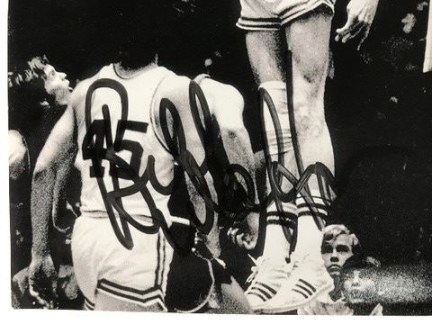 Vintage UCLA Bruins action photo featuring player #32 Bill Walton shooting a basket- signed at the bottom. 8”x10”.
