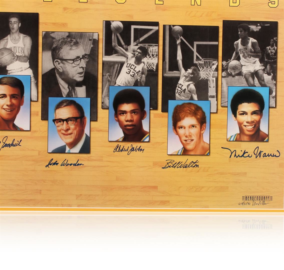 This limited edition lithograph is signed by UCLA Legends: Kareem Abdul-Jabbar, Bill Walton, Gail Goodrich, Marcus Johnson, Keith Ericson, Mike Warren, and coach John Wooden. Comes with Certificate of Authenticity.