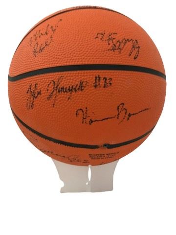 Dribble for the Cure basketball signed by UCLA men's 2009 to 2010 basketball team. Includes # 23 Tyler Honeycutt, #13 James Keene, #1 Mike Moser, #21 Brendan Lane, #12 Anthony Stover, #44 Tyler Trapani and several more. The 2009–10 UCLA Bruins men's basketball team represented University of California, Los Angeles during the 2009–10 NCAA Division I men's basketball season. The Bruins were led by head coach Ben Howland and played their home games at Pauley Pavilion. They finished the season 14–18, 8–10 in Pac-10 play and lost in the semifinals of the 2010 Pacific-10 Conference.