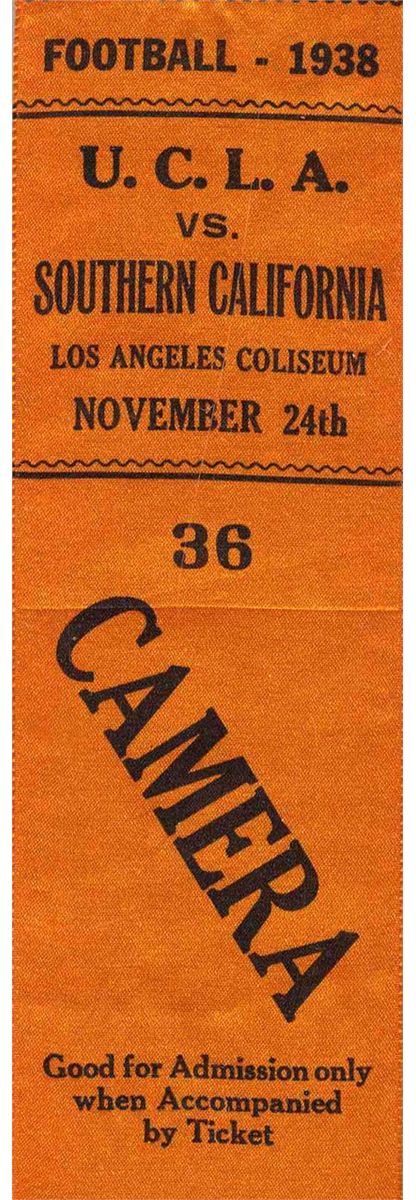 UCLA vs. USC Game Ribbon -- 24 November 1938, Los Angeles Coliseum -- Measures 2'' x 6.25'' -- Very Good